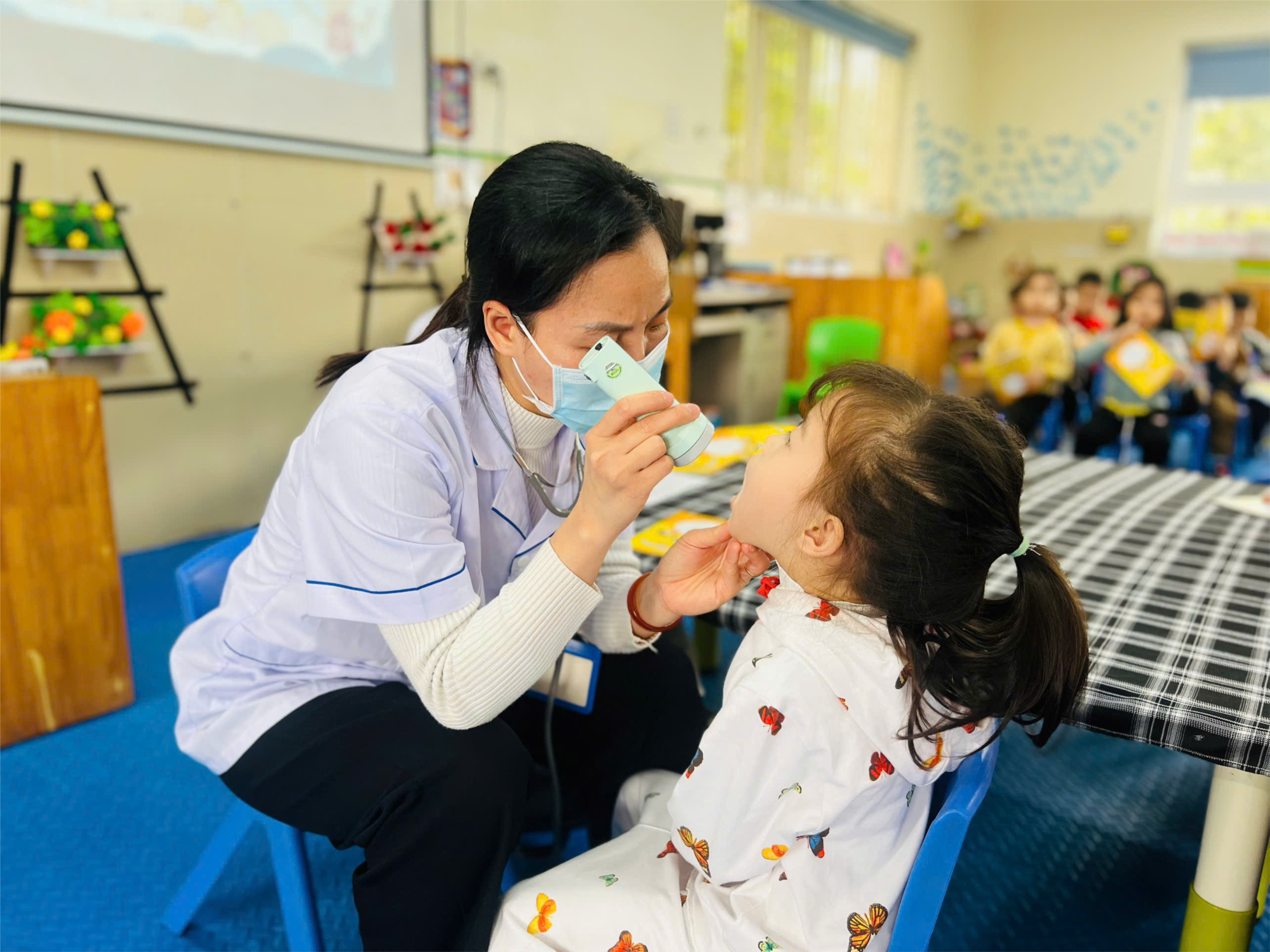 Hoạt động này giúp kiểm tra tổng quát tình trạng sức khỏe của trẻ, phát hiện sớm những vấn đề về dinh dưỡng, phát triển thể chất, thị lực, hô hấp, răng miệng… để từ đó có hướng điều chỉnh và chăm sóc kịp thời. Đồng thời, đây cũng là dịp để phụ huynh nắm bắt rõ hơn về tình trạng sức khỏe của con, từ đó phối hợp cùng nhà trường trong việc chăm sóc và nuôi dưỡng bé tốt hơn.