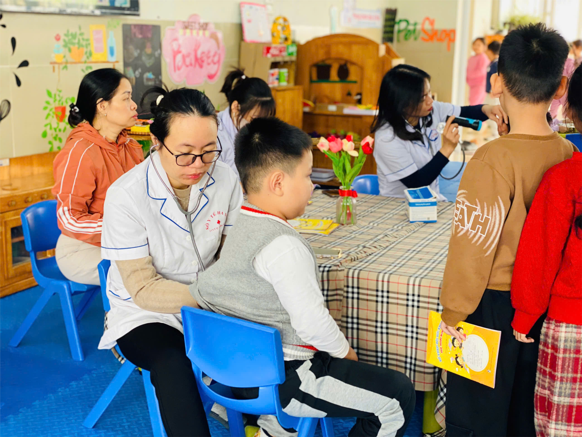 Việc tổ chức khám sức khỏe định kỳ không chỉ giúp nhà trường nắm bắt tình trạng sức khỏe của trẻ mà còn là cơ sở để tư vấn cho phụ huynh về chế độ dinh dưỡng, cách chăm sóc phù hợp, đảm bảo sự phát triển toàn diện cho bé.