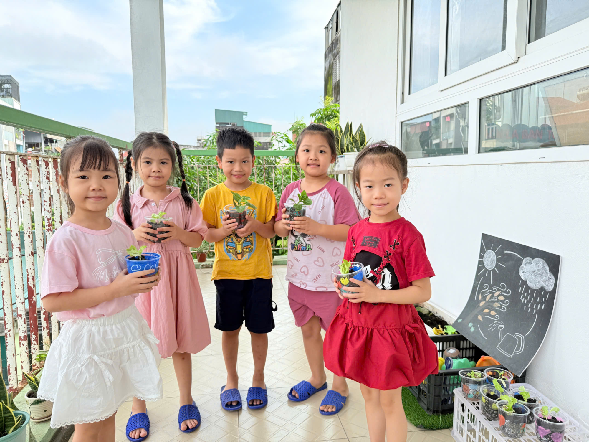 Hoạt động không chỉ giúp trẻ rèn luyện kỹ năng thực hành – trải nghiệm, mà còn hình thành cho trẻ ý thức yêu thiên nhiên, bảo vệ môi trường và biết giữ gìn cảnh quan lớp học. Những chậu cây xanh xinh xắn sẽ được các bé tiếp tục chăm sóc hằng ngày như một người bạn nhỏ thân thương.