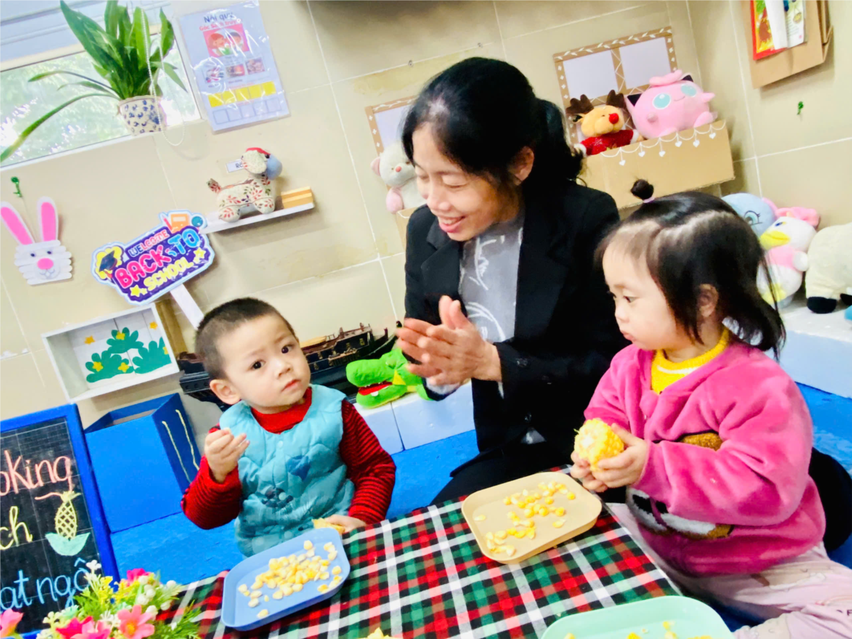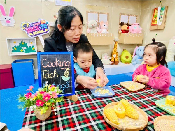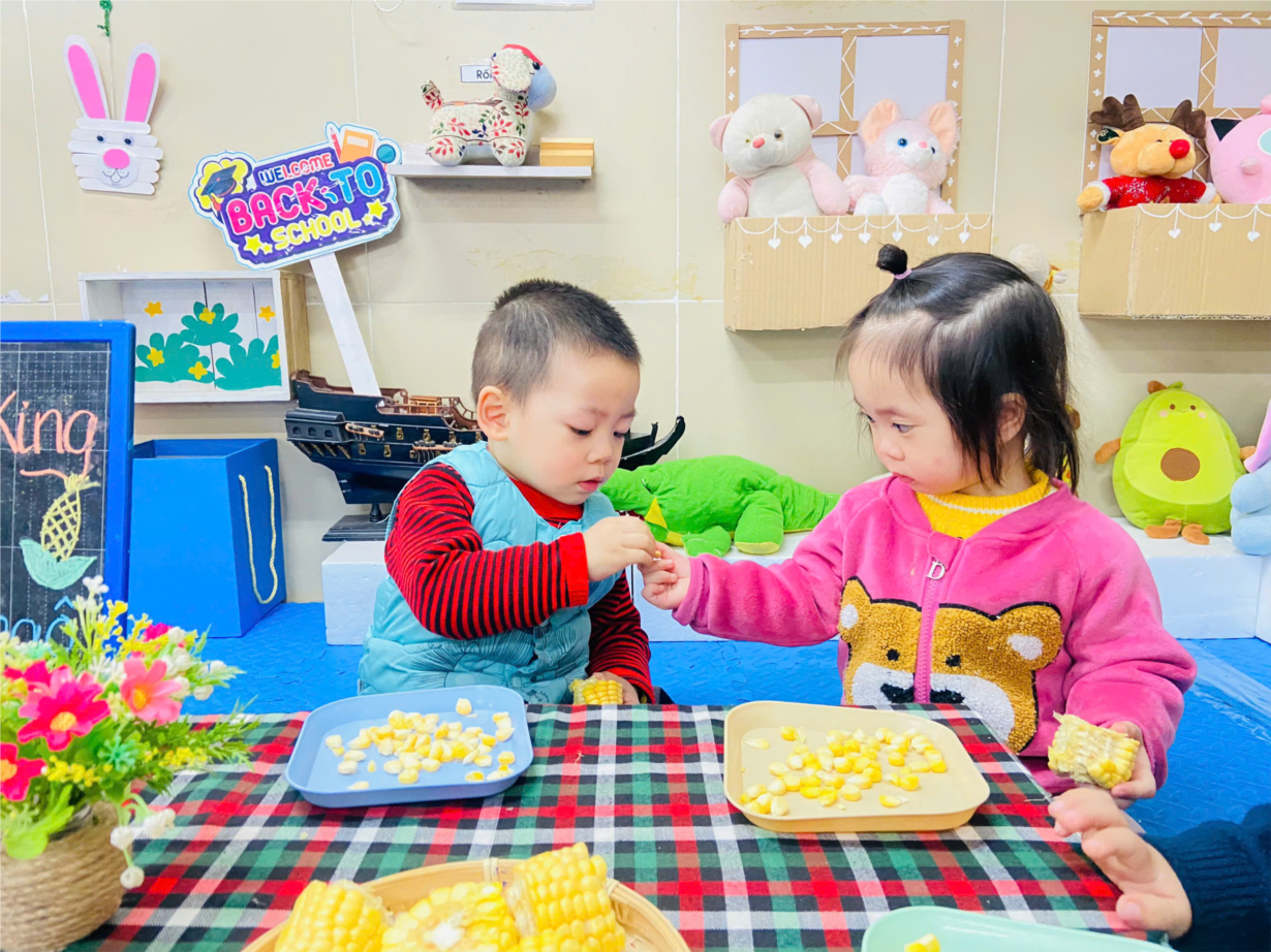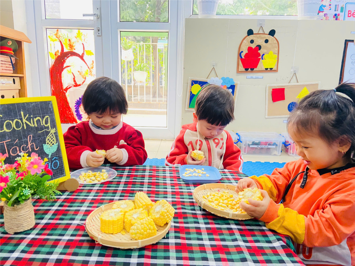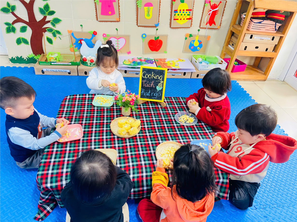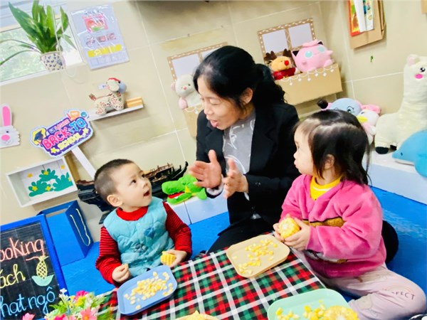 Tập ảnh : Ảnh đẹp tháng 2: Khéo tay hay làm – Bé lớp D2 vui học qua trò chơi tách hạt ngô