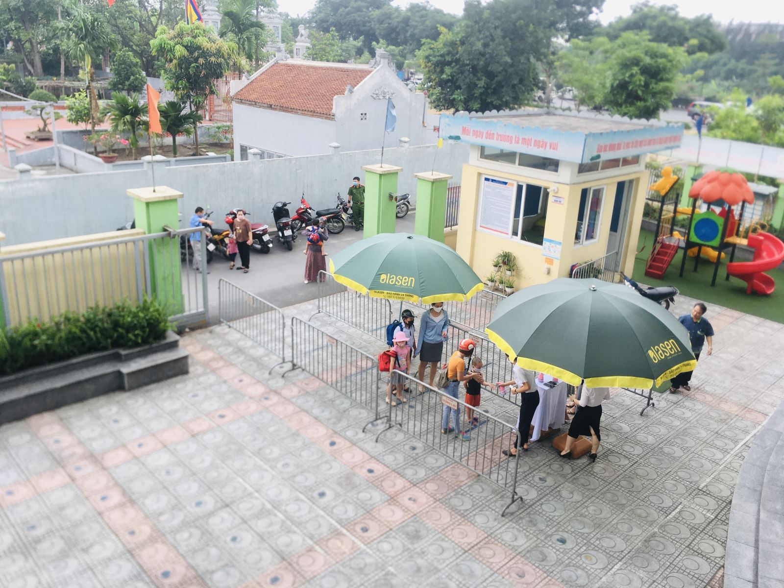 Để bảo đảm an toàn, trước 7h, nhà trường đã kiểm tra sức khỏe của 100% cán bộ, giáo viên, nhân viên, bảo đảm không có trường hợp nào bị ốm mà đến trường làm nhiệm vụ.