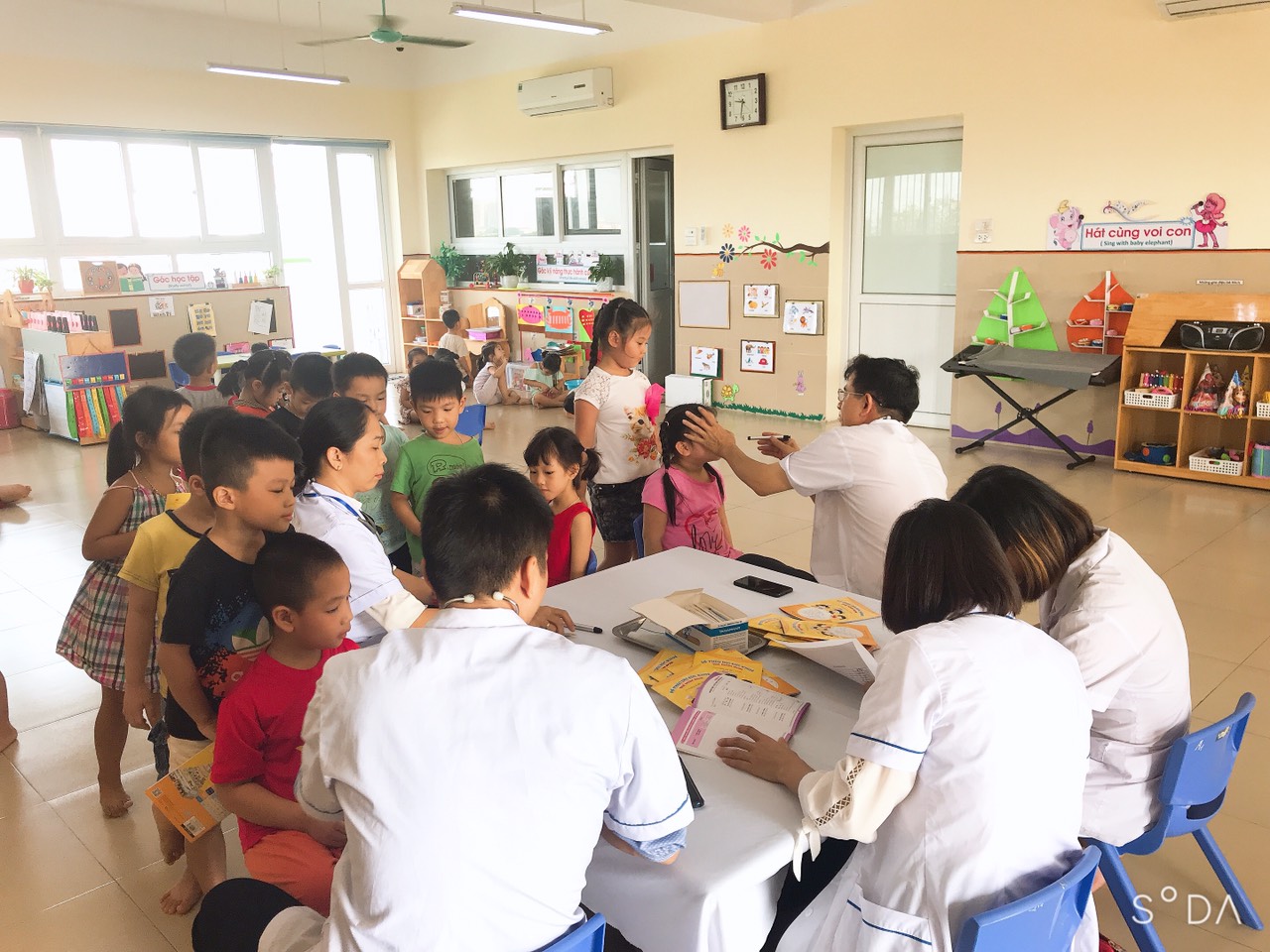 Các bạn nhỏ tham gia khám sức khỏe được khám tổng quát (tuần hoàn, hô hấp, tiêu hóa…) cân nặng, chiều cao, khám các chuyên khoa: tai – mũi – họng, răng – hàm – mặt, cơ - xương – khớp, da liễu... Trẻ có sổ theo dõi sức khỏe, hồ sơ quản lý, theo dõi tình hình sức khỏe. Kết quả khám kiểm tra khám sức khỏe của trẻ được cán bộ y tế ghi đầy đủ trong sổ sức khỏe của từng cá nhân trẻ. Nhân viên y tế nhà trường kết hợp với giáo viên các lớp thông báo đến phụ huynh qua bảng tuyên truyền lớp học và zalo riêng của lớp. Những trường hợp đặc biệt một số cháu mắc bệnh được thông báo đến từng cha mẹ hoặc người giám hộ của học sinh về tình hình sức khỏe học sinh để gia đình kịp thời có các biện pháp điều trị sớm cho cháu.