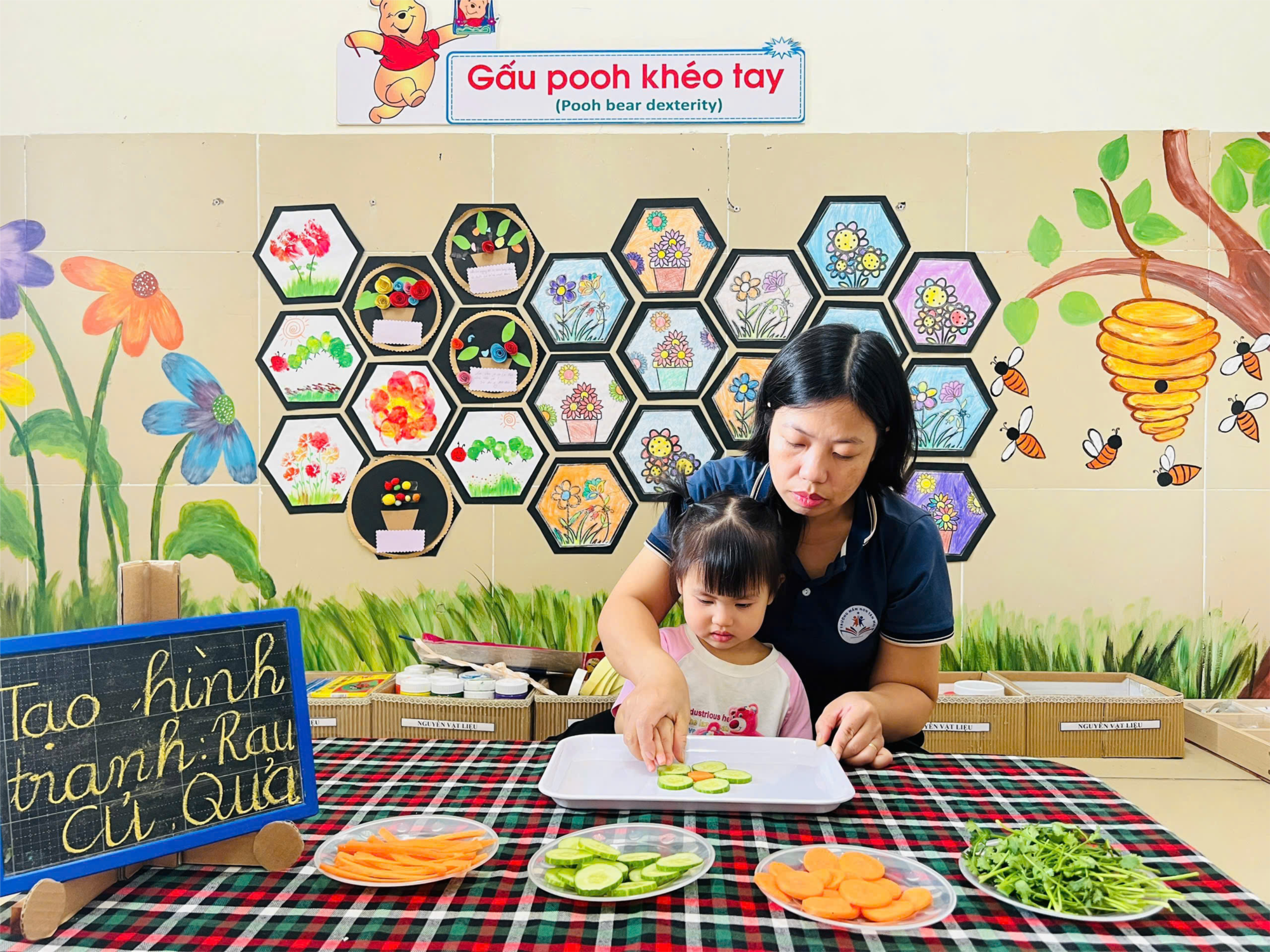 Hoạt động không chỉ giúp trẻ rèn luyện sự khéo léo, phát triển khả năng sáng tạo mà còn hình thành cho trẻ tình yêu với thiên nhiên, biết trân trọng và sử dụng thực phẩm một cách ý nghĩa. Đây cũng là cơ hội để các bé thêm gắn bó, tự tin thể hiện bản thân và có thêm nhiều niềm vui trong hành trình học tập tại trường mầm non.