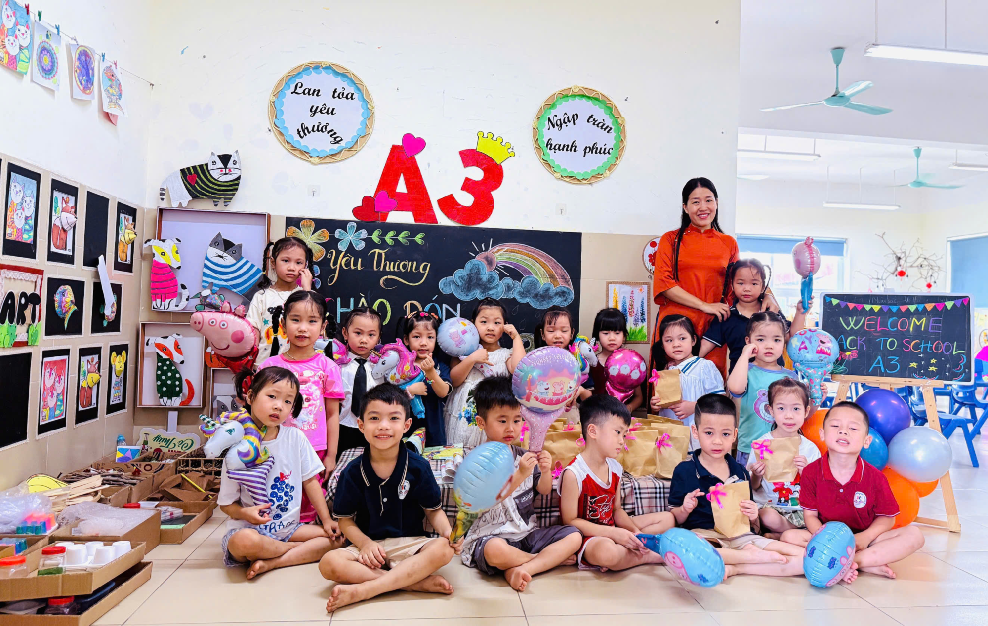 Ngay từ sáng sớm, các cô giáo lớp MGL A3 đã chuẩn bị chu đáo không gian lớp học với những hình ảnh trang trí rực rỡ sắc màu, những góc học tập ngộ nghĩnh và không quên là những nụ cười ấm áp để chào đón các bé quay lại trường. Các bé bước vào lớp với ánh mắt rạng rỡ, có bạn tíu tít ôm cô, có bạn rụt rè nép sau lưng mẹ, nhưng chỉ ít phút sau, tất cả đã cùng hòa mình vào những trò chơi tập thể vui nhộn, tiếng cười vang khắp sân trường.