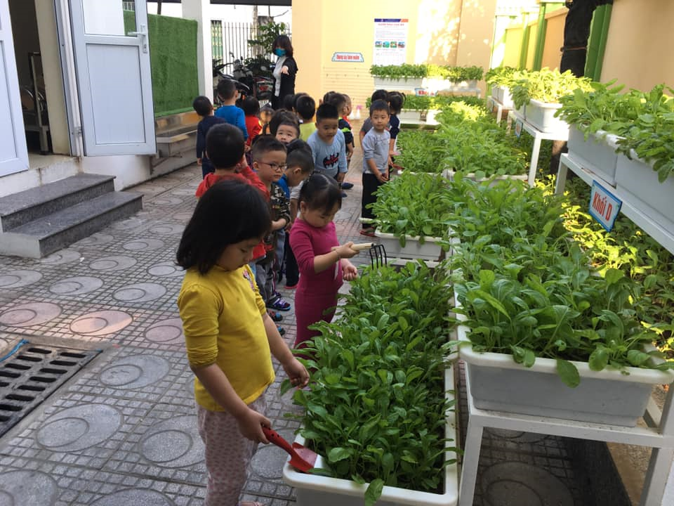 Sau một thời gian gieo trồng và chăm sóc cẩn thận từ các công đoạn: lựa chọn hạt giống, lên luống, vun tưới được cô và trò trong trường nhặt cỏ, bắt sâu chăm sóc hàng ngày nên có rất nhiều những luống rau xanh tươi tốt đã đến ngày thu hoạch. Hôm nay cô và các bé lớp C1 thu hoạch các luống rau cải, tất cả đều được chế biến thành món ăn sau đó.