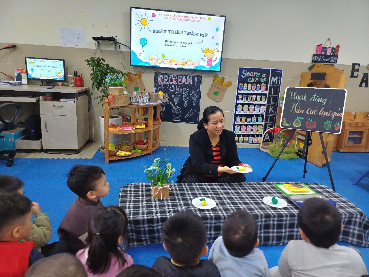Với bàn tay nhỏ nhắn, các bé đã khéo léo nặn những loại quả quen thuộc như quả cam, quả chuối, quả táo và cả những loại quả sáng tạo do trí tưởng tượng của mình nghĩ ra. Dưới sự hướng dẫn tận tình của các cô giáo, từng sản phẩm của các bé đều trở thành những "tác phẩm nghệ thuật" đáng yêu.