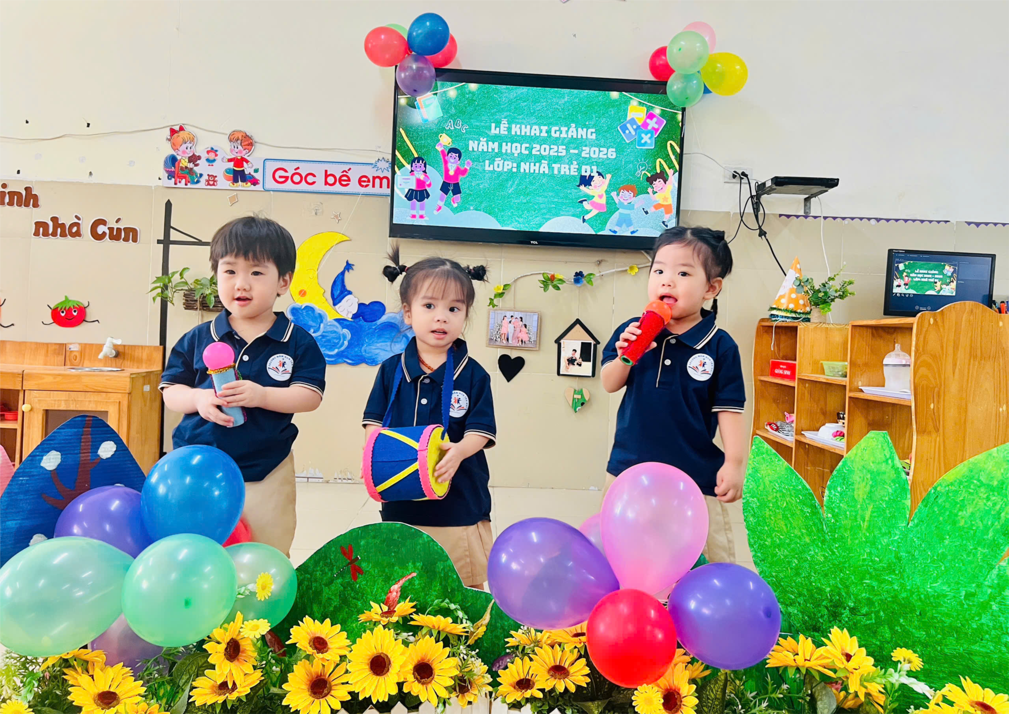 Hòa trong không khí rộn ràng của ngày hội đến trường, sáng nay (ngày 5/9/2025), cô và trò lớp Nhà trẻ D1 đã cùng nhau tổ chức buổi chào đón năm học mới 2025–2026 thật ấm áp và tràn đầy niềm vui.Những gương mặt nhỏ xinh, rạng rỡ trong trang phục đồng phục đáng yêu đã cùng nhau hát vang bài ca ngày khai trường, múa những điệu múa đầu tiên và nhận được thật nhiều lời yêu thương, động viên từ cô giáo.