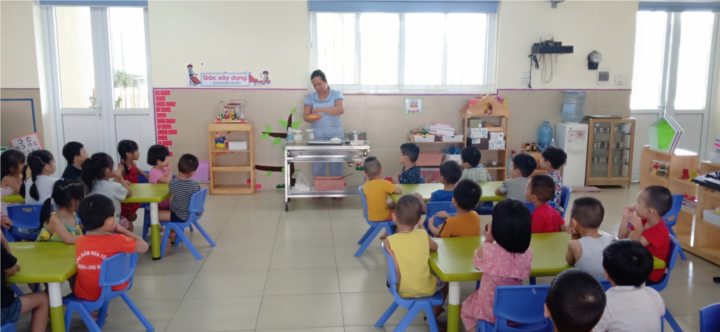Trung thu năm nay tại trường MN Tân Mai với thông điệp “Trung thu trong không khí đoàn viên đầm ấm gia đình”. Các cô giáo đã quyết định tổ chức Trung thu trong không gian nhỏ là lớp học. Tại lớp mẫu giáo nhỡ B2, các bạn nhỏ không chỉ được cùng nhau làm những chiếc đèn lồng nhiều màu sắc mà các bạn còn được tham gia một hoạt động vô cùng ý nghĩa là được các cô giáo hướng dẫn để tự tay làm những chiếc bánh Dẻo thơm phức mùi hoa bưởi. Nhìn ánh mắt bạn nào cũng đong đầy niềm vui và niềm hạnh phúc bên cô.