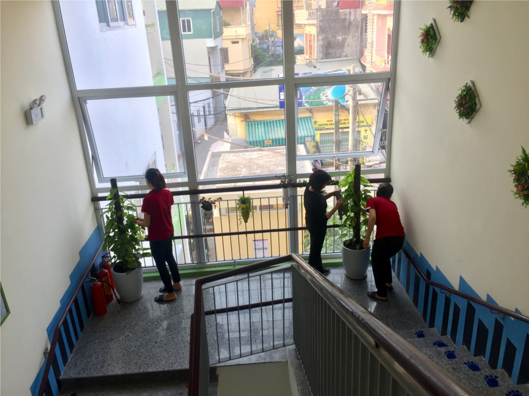 Duy trì lịch tổng vệ sinh chiều thứ sáu hàng tuần của cán bộ giáo viên nhân viên trong trường giúp trường có một môi trường luôn sáng - xanh- sạch đẹp- văn minh, đó cũng là công tác phòng chống các dịch bệnh như bệnh sốt xuất huyết, tay chân miệng, bệnh đau mắt đỏ.. .